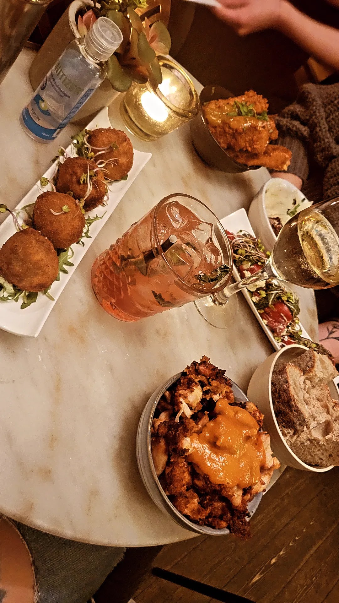 Nous avons été si heureux d'avoir choisi de manger ici. L'endroit a une ambiance chaleureuse unique. C'est très petit et les tables sont toutes rapprochées mais ce n'est pas un point négatif. Les portions sont généreuses donc 2 assiettes par personne suffisent amplement. Les cocktails sont merveilleux et le dessert aux cookies fortement recommandé !