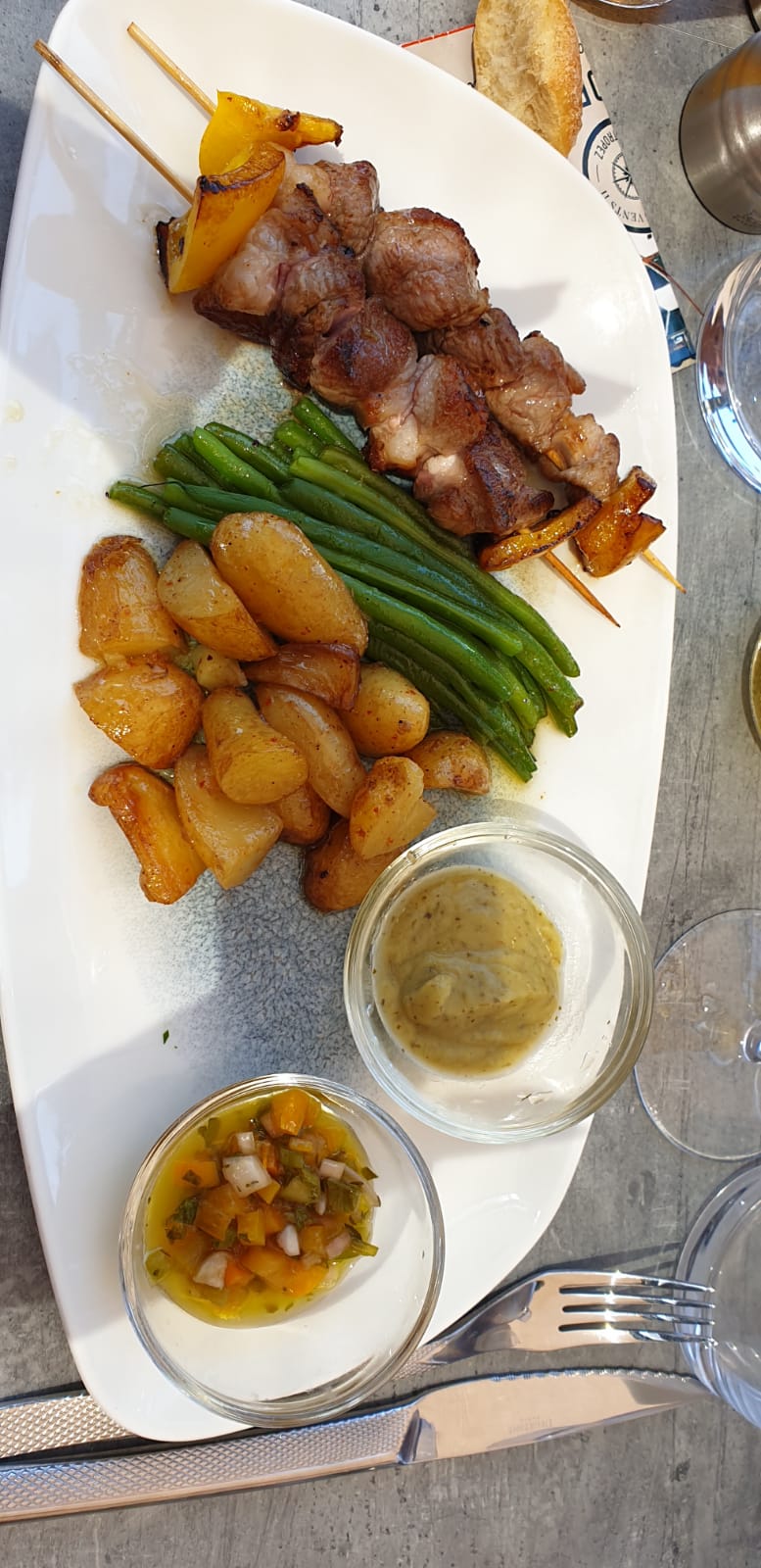 Posté le 20/09/2022 à 15:53"Accueil agréable, serveuse souriante, beau cadre Apéritif deux coupes de champagne, je regrette de n avoir eu quelques olives à grignoter avec ... Et d avoir eu le plat alors que nous étions entrain de boire notre apéritif ... Pour ce qui est du plat, bonne cuisson du poisson mais quantité restreinte et rien de très exceptionnel en terme de présentation.. un filet de saumon, de l huile d olive avec des tomates en des en guise de sauce et des pommes de terre grenailles... une petite ratatouille aurait été bien venue par exemple En revanche les desserts sont très savoureux et la quantité est là Vin très très bon Voilà un travail est à faire au niveau des plats... nous venons d alsace avons l habitude des belles tables et pour le prix que nous avons payé nous aurions eu plus de quantité et de qualité au niveau du plat"